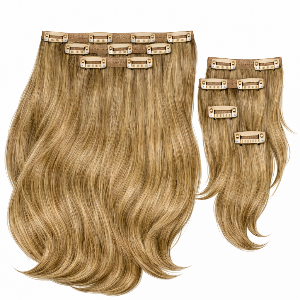 Información sobre clips: *Pon clips durante 30 segundos y sé genial. *Un paquete de clip-on hair contiene un kit de hair-locks. *100 gramos en total cada paquete. * Puedes usar nuestro cabello más de tres años. * Cada mechón está hecho de 3-4 trenzas de trama doble bien cosidas en una trenza con 2 o 3 clips con almohadillas de silicona. kits de 7 piezas: *Ofrecemos kits de 7 partes, además de Simlik. *Cada kit contiene siete mechones de cabello de diferente ancho: 2 × 13 cm, 2 × 9 cm, 1 × 6 cm y 2 × 3 cm. kits de 2 partes: *Ofrecemos kits de 2 piezas además de Simlik. *Cada paquete contiene dos mechones de cabello de 50g de diferente ancho: 1×26cm y 1×22cm. *El modelo proporciona una distribución uniforme del volumen adicional del cabello, por lo que el cabello se ve natural y bien equilibrado. * Nuestro cabello no se enreda.