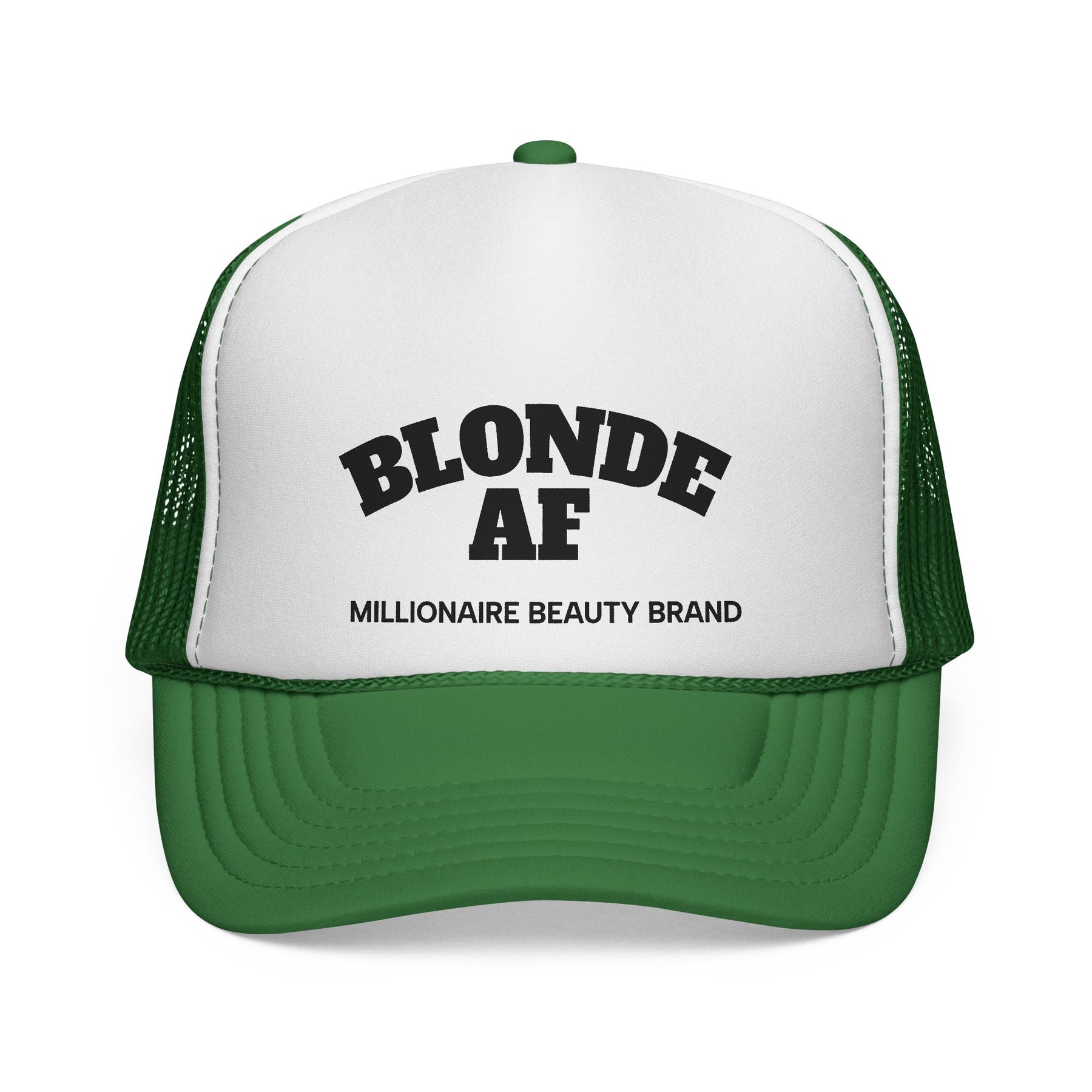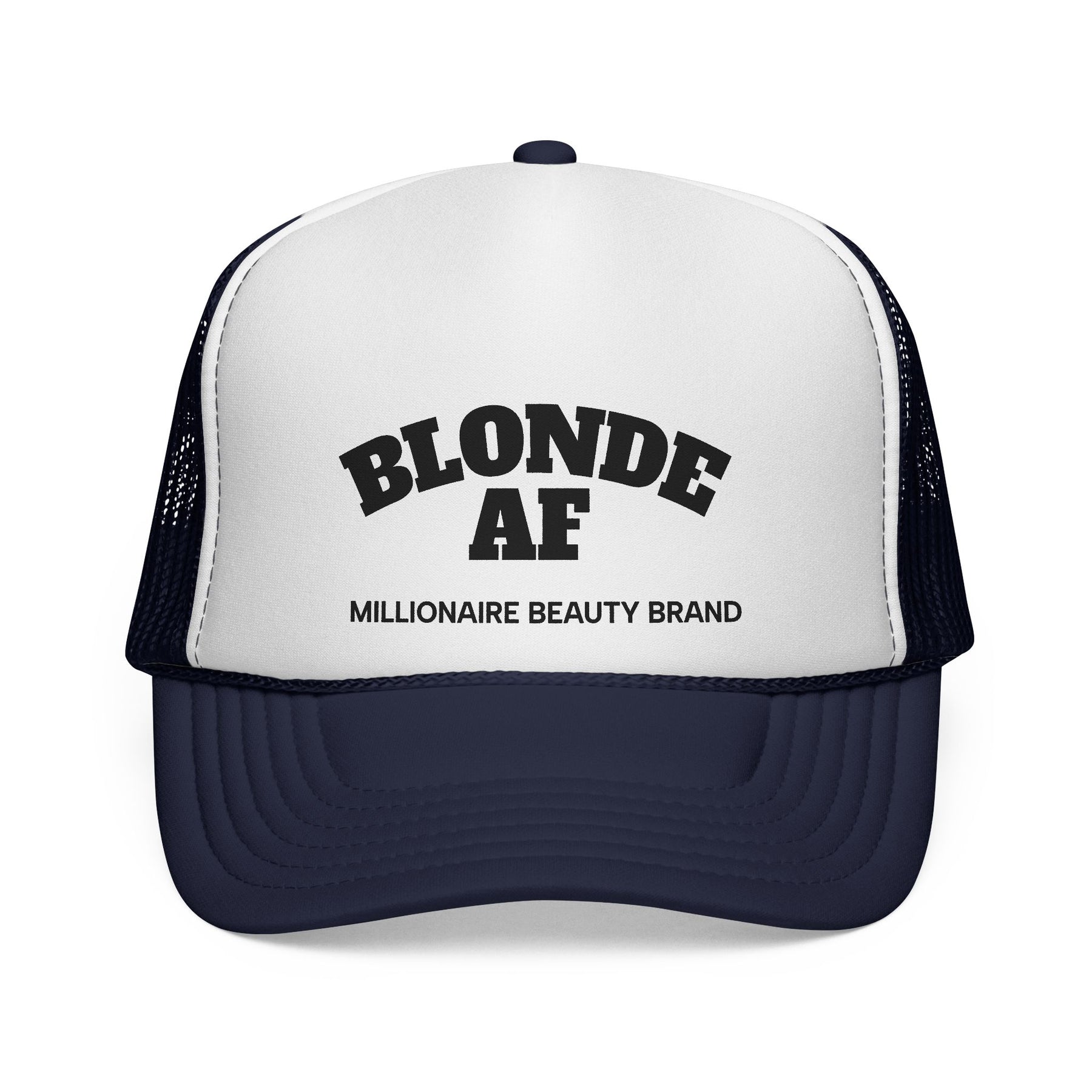Blonde AF Trucker Hat — Retro Bold Logo Cap (Millionaire Beauty Brand)