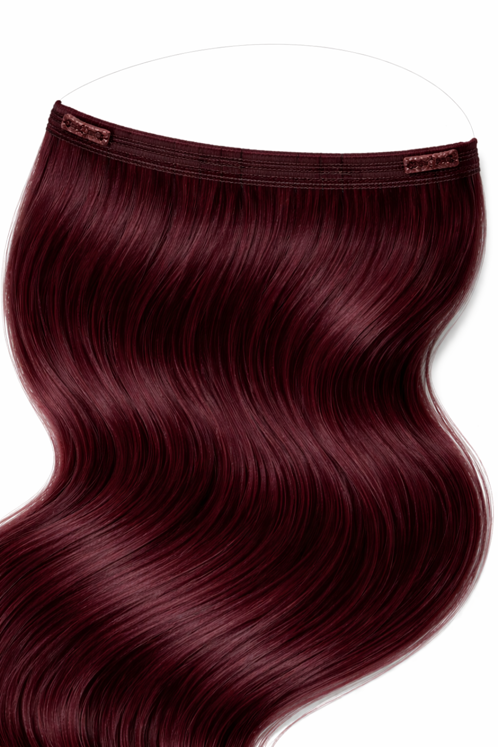 The extension weft is attached to a thin, transparent adjustable wire that sits comfortably around the crown of your head like a halo. Your natural hair is then gently pulled over the wire, completely concealing it and blending the extensions seamlessly into your own hair.